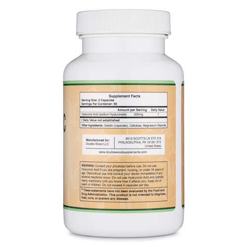Hyaluronic Acid Supplements -180 Capsules (Enhances Effects of Hyaluronic Acid Serum for Face) 200mg Per Serving for Skin and Face Aging Support (Acido Hialuronico) Gluten Free by Double Wood