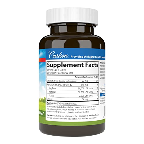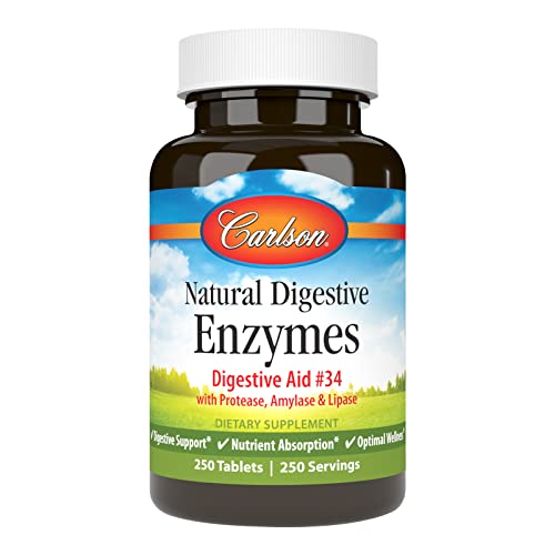 Carlson – Natural Digestive Enzymes, Digestive Aid #34 with Protease, Amylase & Lipase, Digestive Support, Nutrient Absorption & Optimal Wellness, 250 Tablets