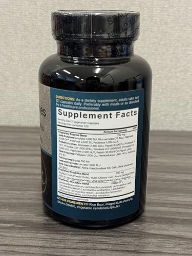 Digestive Enzyme and Prebiotic complex with 240 veggie capsules, one capsule serving for an 8-month supply, take one per meal daily for up to three meals for the first week, then only once daily after that for optimal benefits