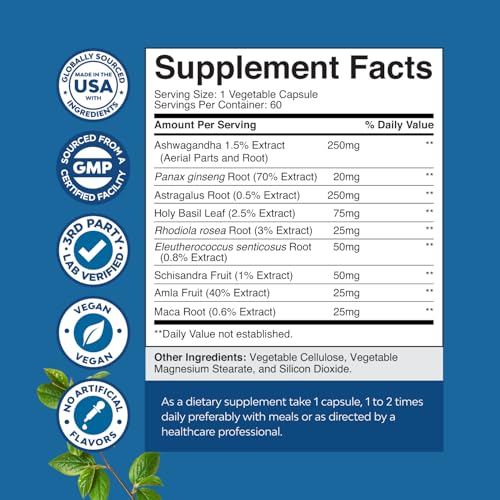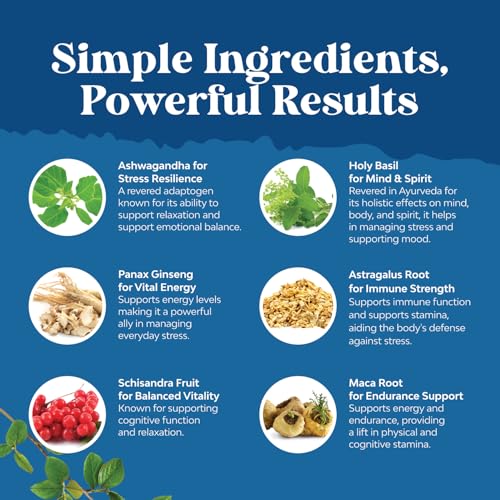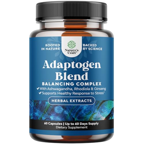 Herbal Adaptogen Mood Support Supplement – Calming Adaptogens Supplement for Stress & Cortisol Management with Ashwagandha Rhodiola Rosea & Maca Root – Vegan Non GMO & Daytime Friendly – 60ct