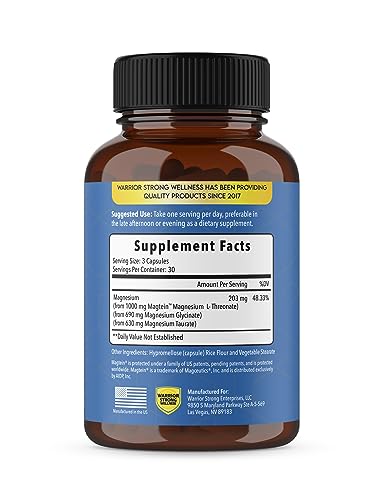 MAXIMUM ABSORPTION with this TRIPLE BLEND of the 3 BEST FORMS of MAGNESIUM: Warrior Strong Wellness’ premium blend of the best–Magnesium L-Threonate, Magnesium Glycinate and Magnesium Taurate all known to have the highest bioavailability.100% Chelated Magnesium Supplement.