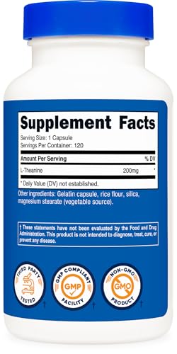 Nutricost L-Theanine 200mg, 120 Capsules, Double Strength – Non-GMO, Gluten Free