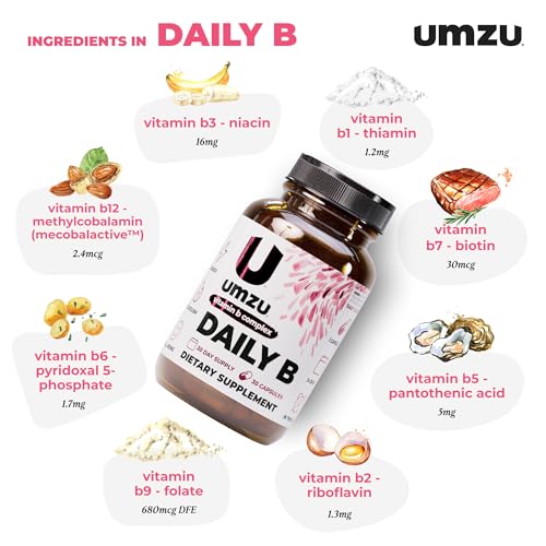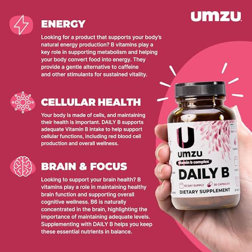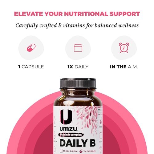 UMZU Daily B, 30 Day Supply – Complete Vitamin B Complex Supplement Blend with B1, B2, B3, B5, B6, B7, B9 & B12 Plus Folic Acid & Biotin – Supports Energy, Focus, Mood, Metabolism & Overall Wellness