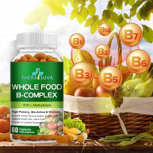 Whole Food Vitamin B-Complex + Biotin + Probiotics – 100% Vegan & Plant-Based, Supports Energy, Metabolism & Overall Wellness – 60 Day Supply, 120 Capsules