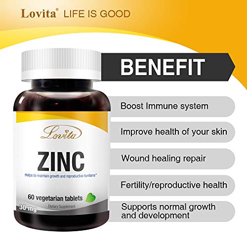 PREMIUM VEGAN ZINC SUPPLEMENTS: Lovita Zinc 30 mg is made with high quality zinc chelate. It’s an optimally absorbed form of zinc to support general wellness, immune function and healthy skin.