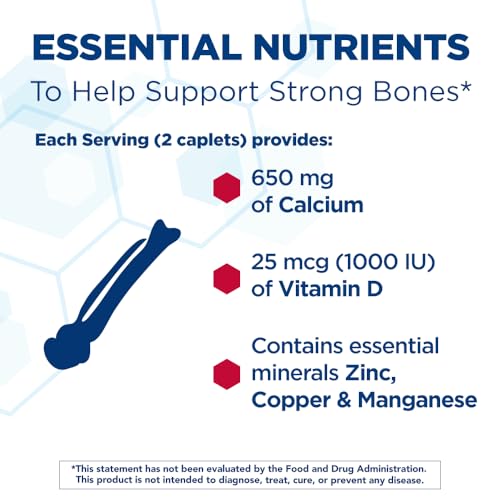 5 Bone Supporting Nutrients: Each serving (2 caplets) provides 650 mg of calcium citrate and 25 mcg (1000 IU) of vitamin D3 to help the body absorb calcium; also contains essential micronutrients – zinc, copper and manganese to support bone health*