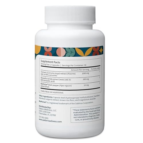 Be the first to review “Pattern Wellness Turmeric Curcumin – 95% Curcuminoids with BioPerine® Black Pepper – Supports Joint, Cognitive & Immune Health – Non-GMO, Gluten Free – 60 Capsules”