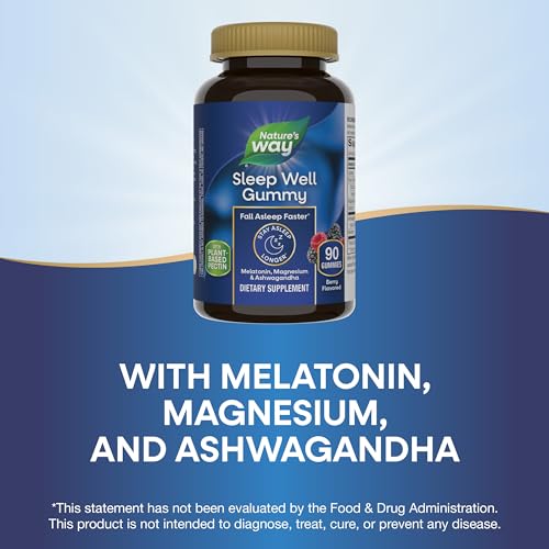 Nature’s Way Sleep Well Melatonin and Magnesium Gummies, Sleep Support for Adults*, with Ashwagandha, Berry Flavored, 90 Gummies