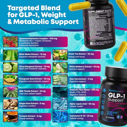 Advanced Weight Loss Support: This advanced formula blends metabolism-enhancing botanicals with a Prebiotic Fiber Blend containing Inulin, FOS, and GOS to support digestive balance and overall gut health. Xyro Research GLP-1 Support helps curb food cravings, control hunger, and provide natural appetite suppressant and feel full benefits when used along with a healthy lifestyle, while reinforcing metabolic efficiency as a daily metabolism booster for lasting results that work over time.