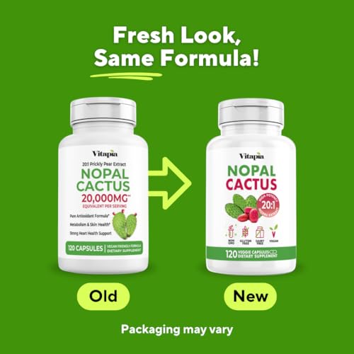 Vitapia Nopal Cactus Extract for Antioxidant, Skin, Metabolism, Wellness, Heart Health Support – 120 Veggie Capsules – Non GMO, Gluten Free Supplement